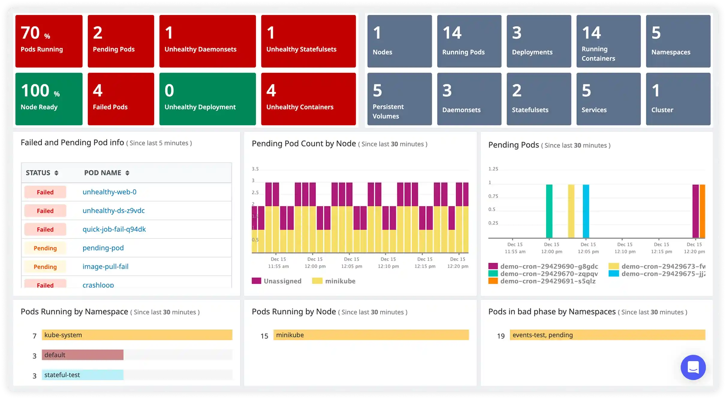 Ensure containerized workloads run reliably by analyzing node performance, pod health, and resource allocation across your clusters.