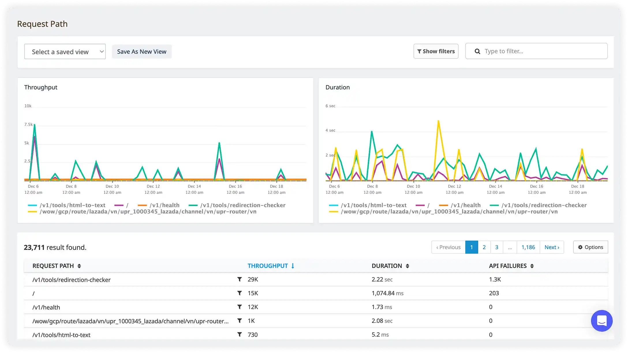 With out-of-the-box dashboards you can find API actionable insights right away. Click on a particular requests to see the related API metrics.