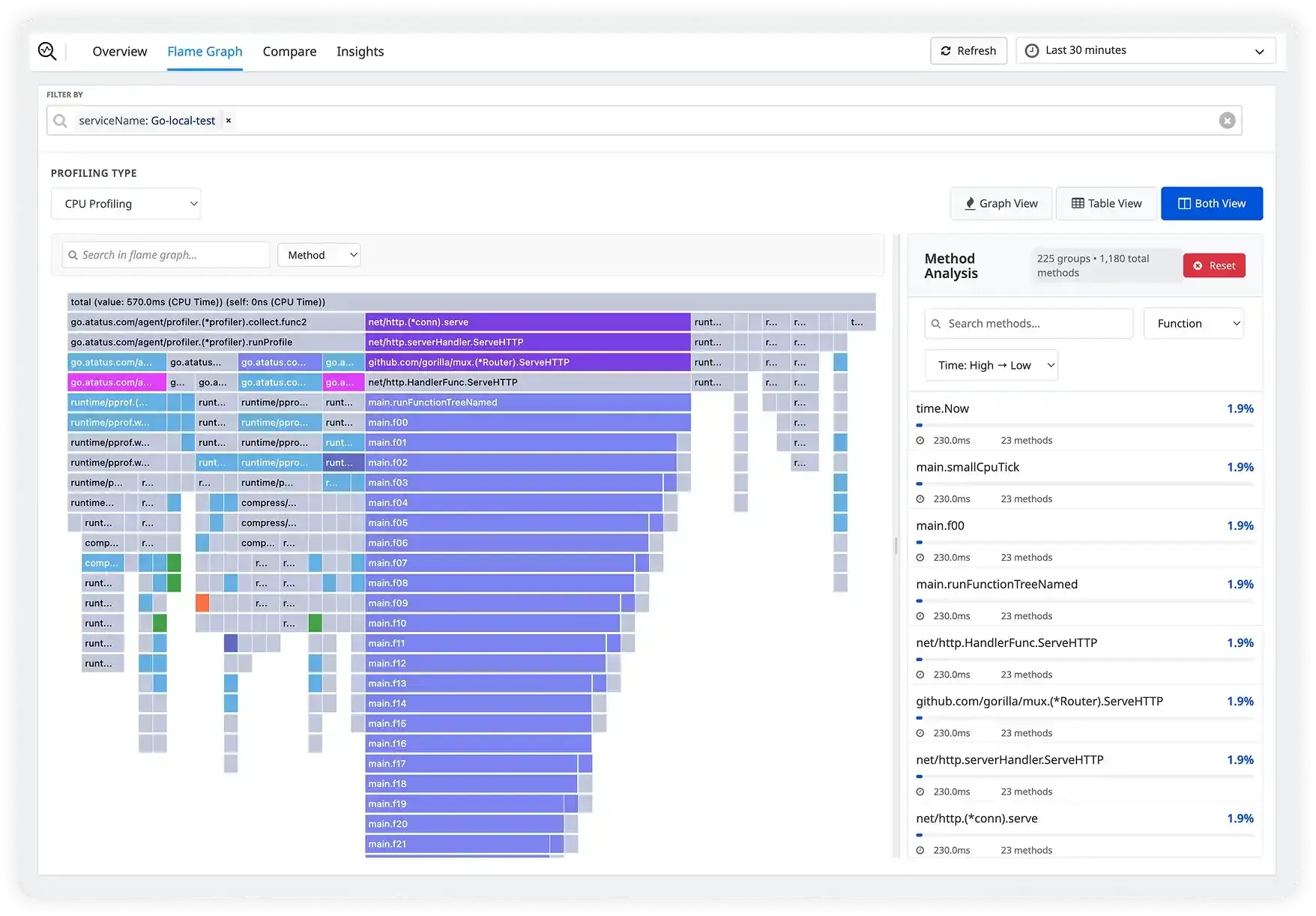 Atatus Continuous Profiling captures what your code is doing in production - function by function, line by line, so your engineers fix real bottlenecks, not guesses. Flame graphs from live traffic in under 5 minutes.