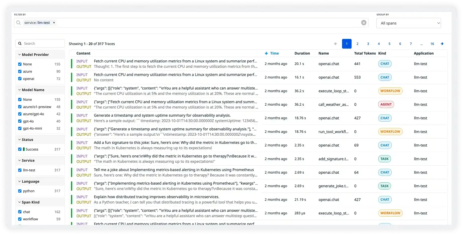 Group traces by user session to see entire conversation flows. Understand the full context behind every LLM interaction and user journey.