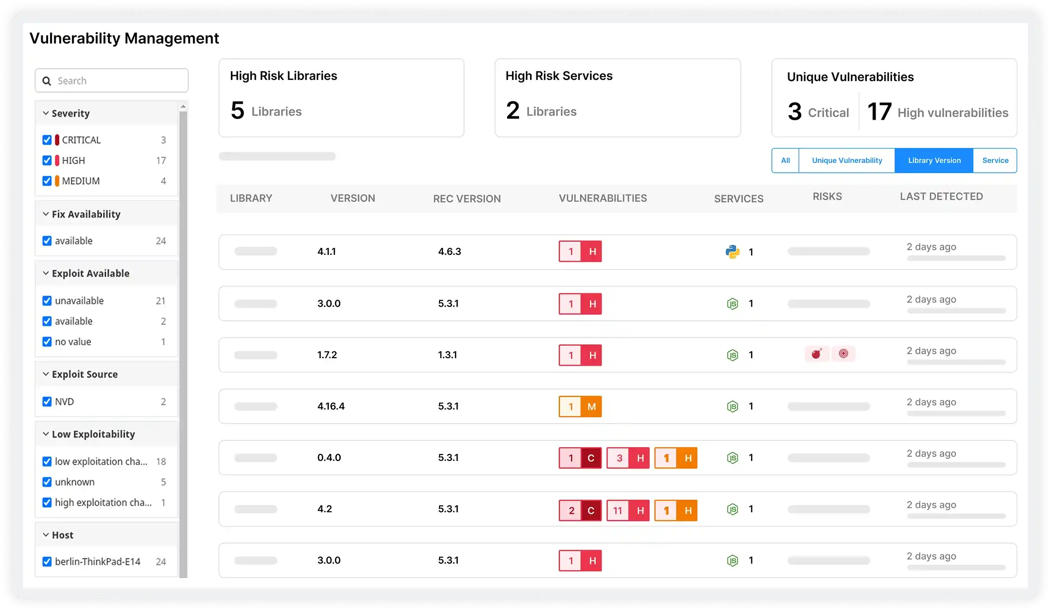 - Get a consolidated view of vulnerabilities across libraries, services, and environments