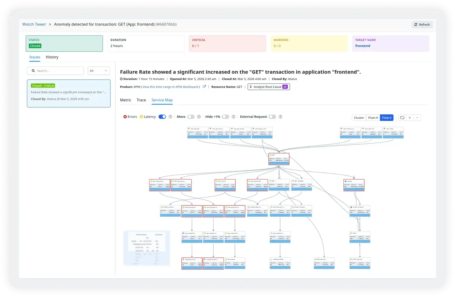 Watch Tower analyzes application behavior continuously within its analysis windows, catching issues as soon as they occur. By reducing detection latency and providing immediate RCA, teams can respond to incidents faster and prevent user-facing impact.